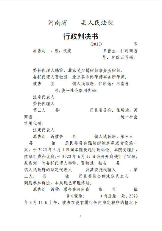 本案代理律師 北京吳少博律師事務所張弛 案情摘要: 宅基地強制騰退 當事人遭受言語威脅失
